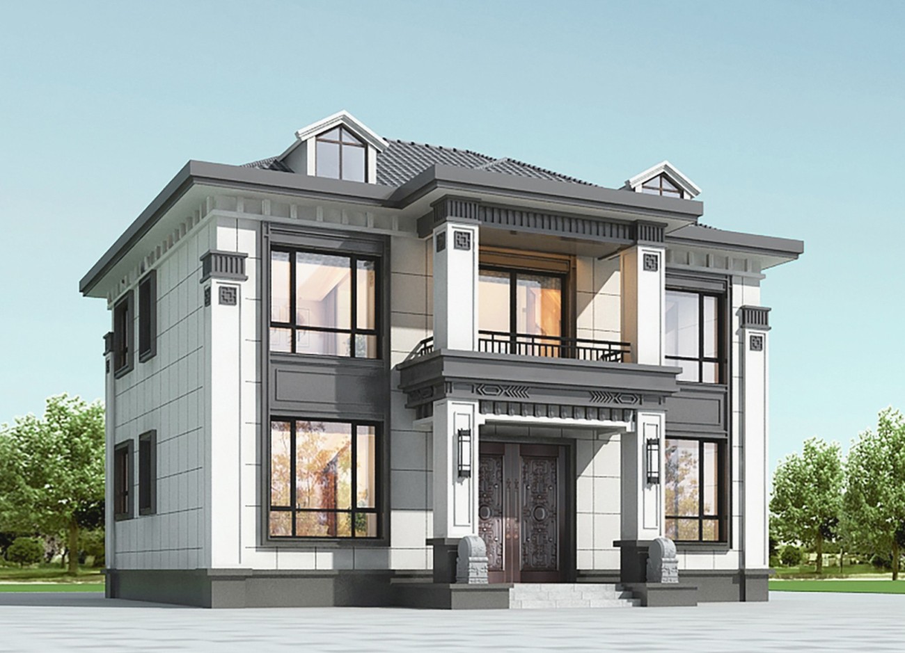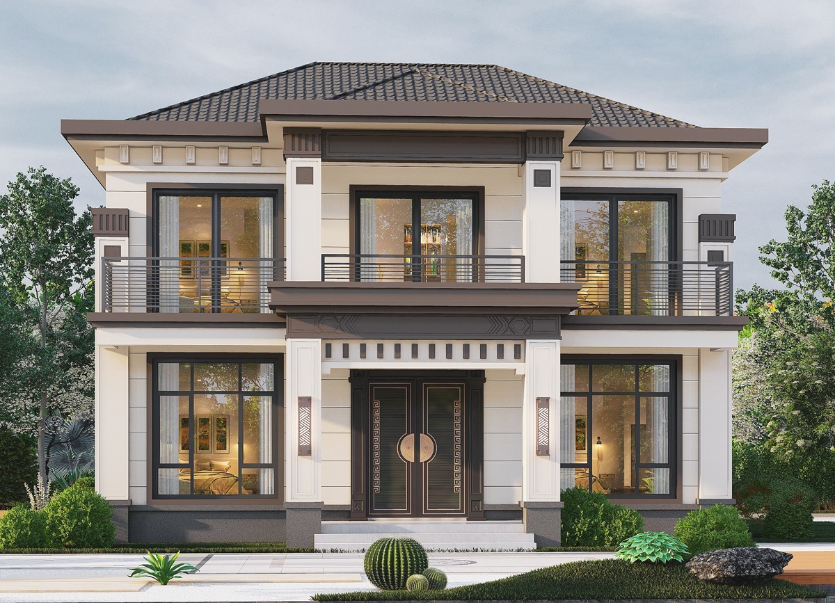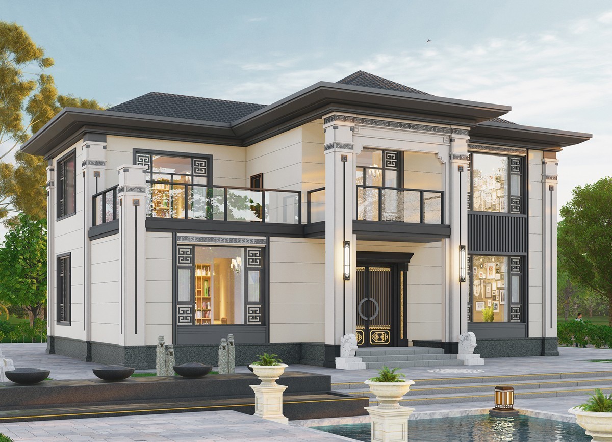 铜仁005 两层新中式(11.36x11.76米)-【易设计】